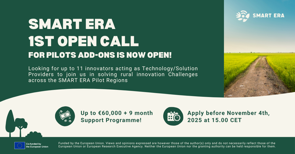 Up to 11 Innovators will receive €60,000 and Mentorship to Tackle SMART ERA Rural Challenges
